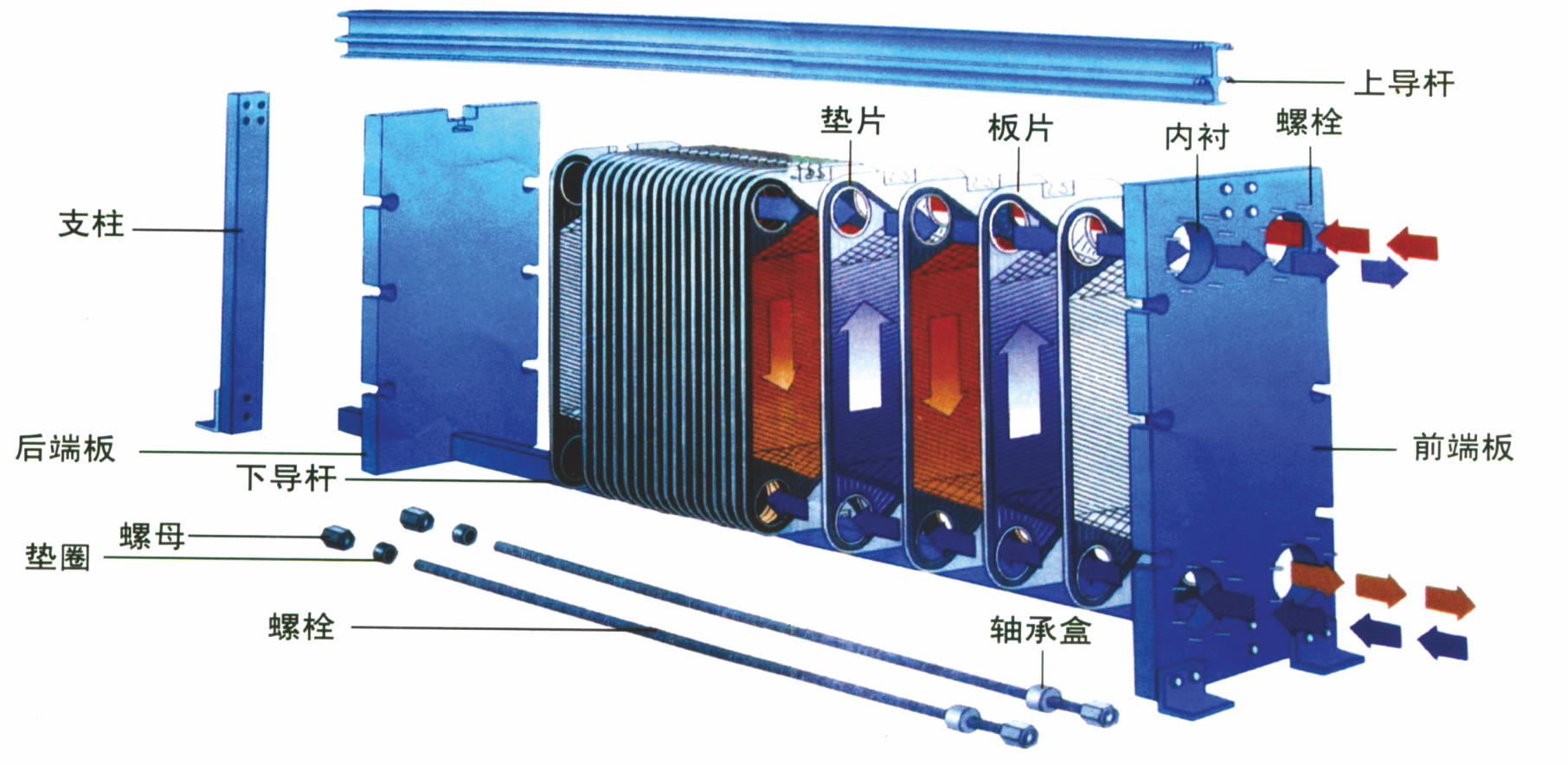 1. 核心性能與特點(diǎn)高傳熱效率:板片上的波紋設(shè)計(jì)使流體在低流速下也能產(chǎn)生強(qiáng)烈湍流,傳熱系數(shù)通常是管殼式換熱器的 3-5 倍。