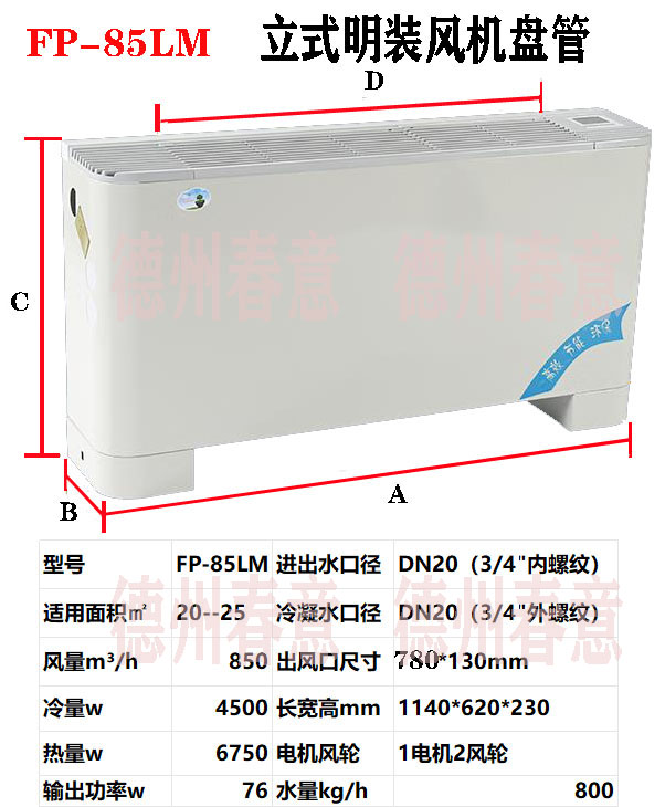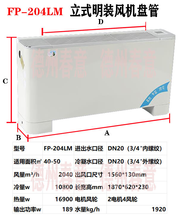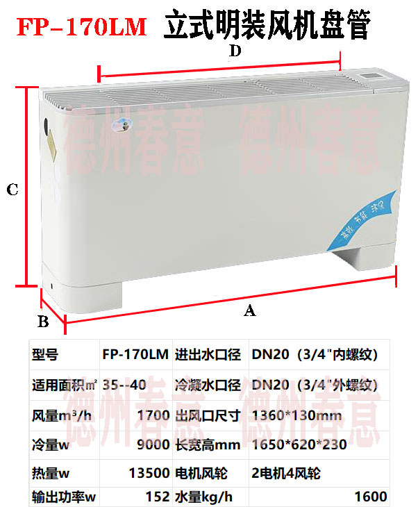 安裝方式:“立式” 指設(shè)備為垂直放置,通常落地或靠墻安裝。“明裝” 指其所有部件(風(fēng)機(jī)、電機(jī)、盤管、外殼、控制面板等)及連接的管道、電線均完全暴露在室內(nèi)可見(jiàn)位置,無(wú)需任何吊頂或墻體開(kāi)槽隱蔽。