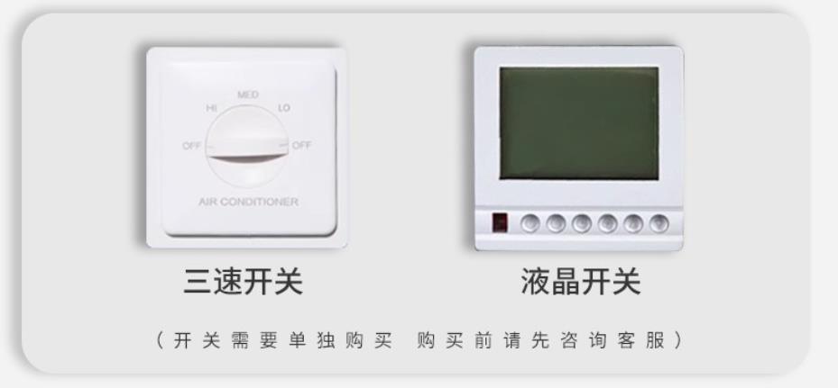 獨(dú)立控制:每個(gè)單元配備獨(dú)立溫控器和調(diào)速開(kāi)關(guān),用戶可自行開(kāi)關(guān)、調(diào)節(jié)風(fēng)速和設(shè)定溫度,實(shí)現(xiàn)房間的個(gè)性化溫控和節(jié)能運(yùn)行。